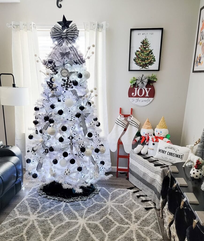If you want something sleek, elegant, and a little unexpected, monochrome trees are trending. Think black & white, or even using one color heavily (like all white or all metallics) for a clean, modern look.