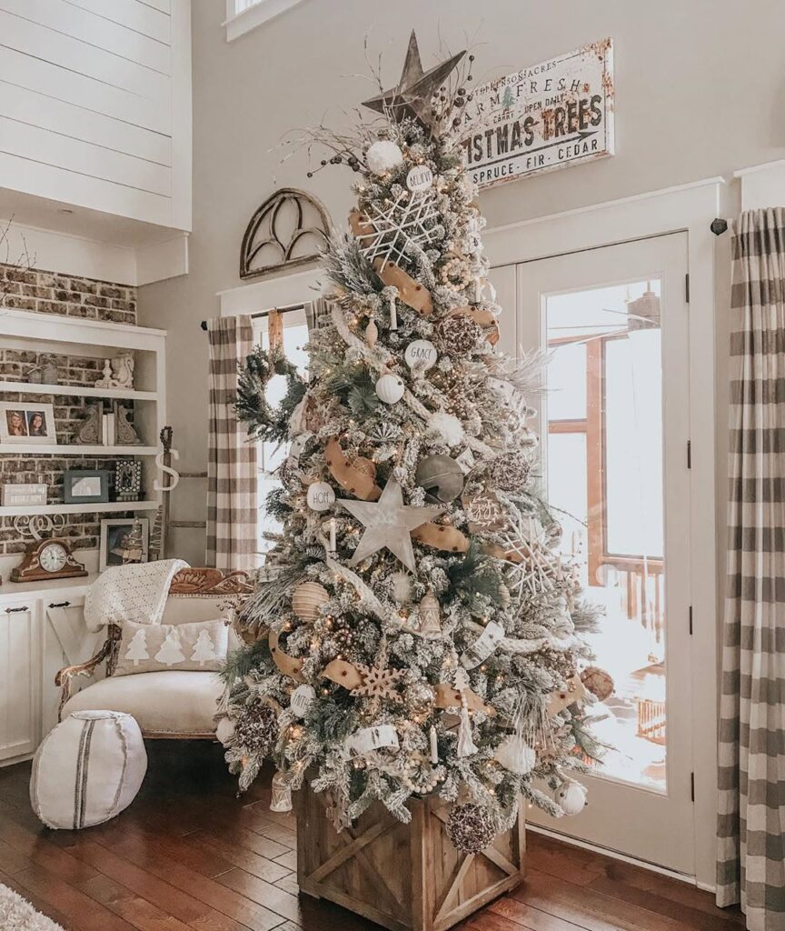 Earthy, natural, and warm—this theme uses natural elements (pinecones, wood, berries, eucalyptus, etc.) to give your tree that cozy cabin-meets-winter wonderland vibe.