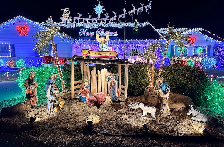 Have a favorite lawn display or Christmas inflatables? Use spotlights to highlight them after dark. A few well-placed lights can make Santa, reindeer, or even your favorite nativity scene stand out beautifully.