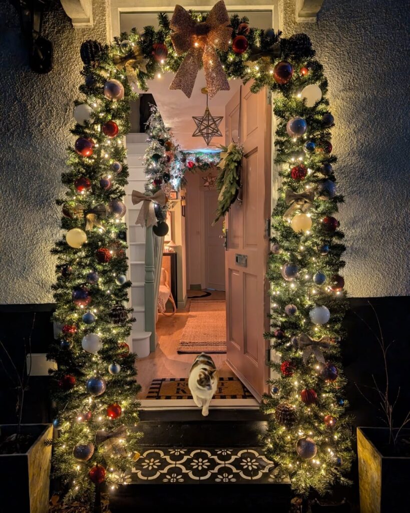 Lighted pathway stakes or lanterns add instant charm while guiding guests to your door. From candy cane shapes to glowing stars, there are tons of ways to make your walkway sparkle.